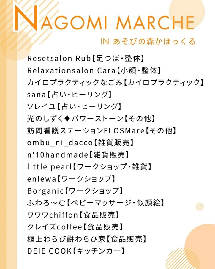 なごみマルシェ@あそびの森かほっくる 開催概要