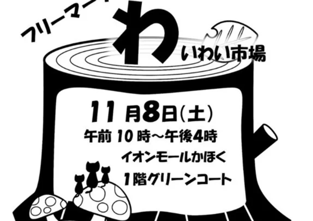 11月8日(土)に石川県かほく市の「イオンモールかほく」にてフリーマーケット『わいわい市場』が開催されます