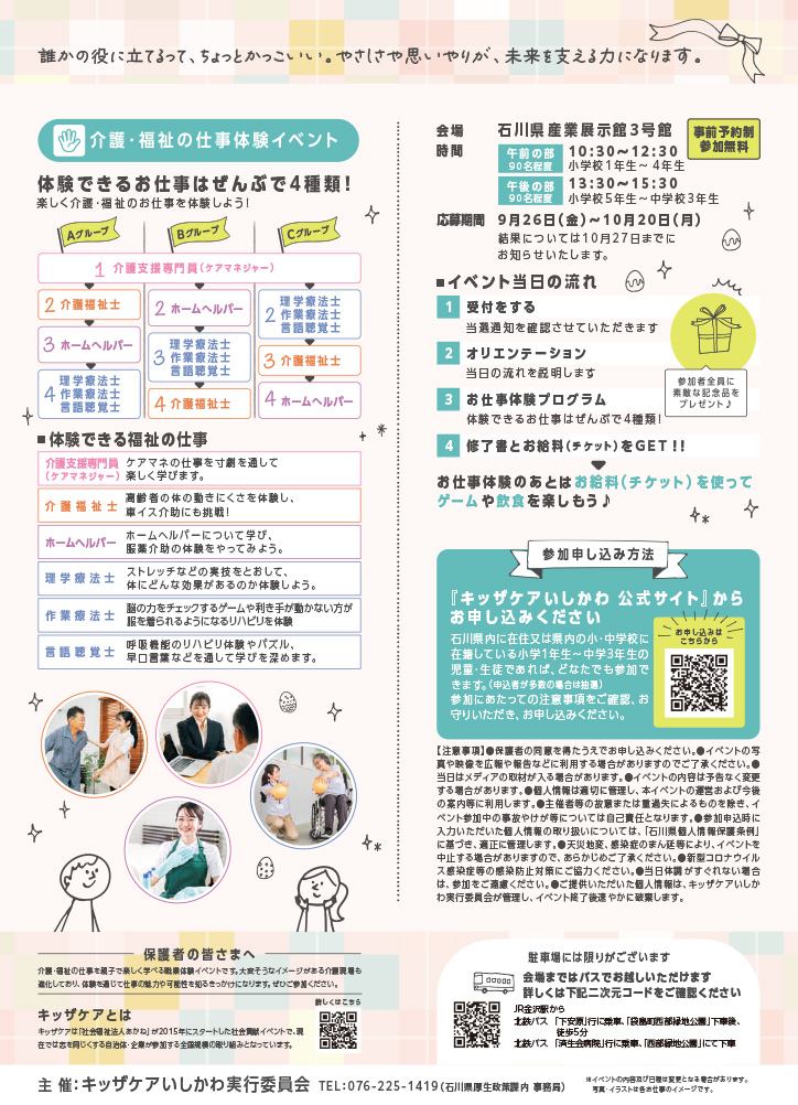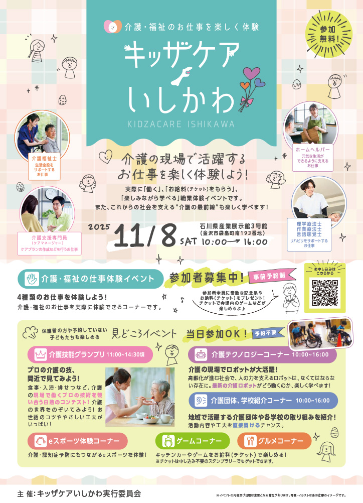 11月8日(土)に石川県金沢市の「石川県産業展示館3号館」にて『キッザケアいしかわ』が開催されます