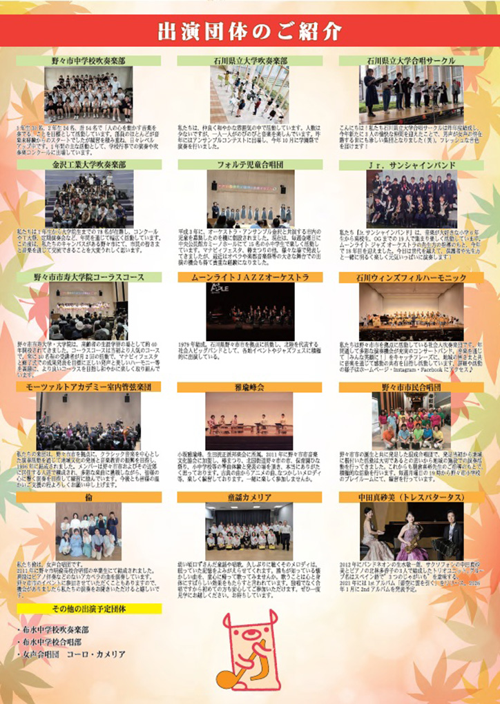 野々市市民音楽祭2025@野々市市文化会館フォルテ 出演団体