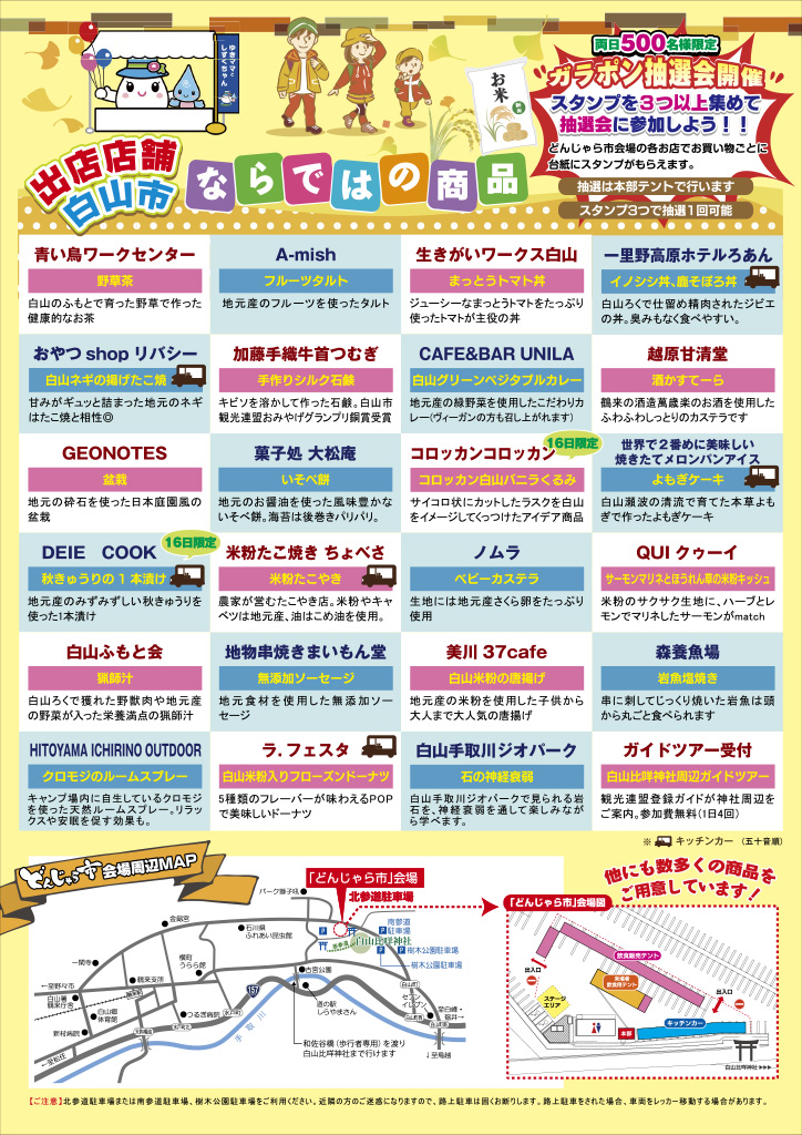 うらら白山人秋祭 どんじゃら市2025@白山比咩神社北参道駐車場 イベント内容