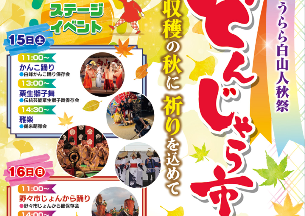 ぜひご家族やご友人と『うらら白山人秋祭 どんじゃら市2025』に出かけてみませんか