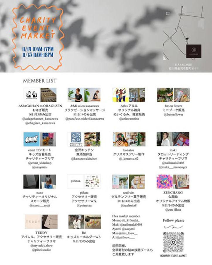 [11/14-15]Charity Event, Market Vol.3(チャリティーイベントマーケット)がHARMONIEで開催(金沢)