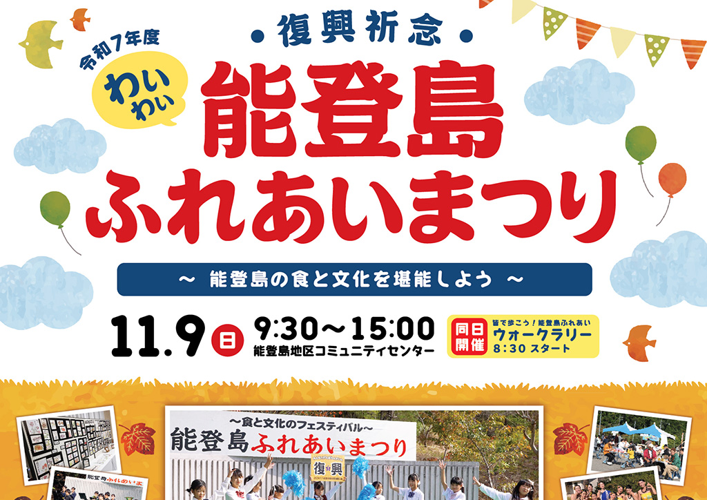 11月9日(日)に石川県七尾市能登島の「能登島地区コミュニティセンター」にて『わいわい能登島ふれあいまつり』が開催されます