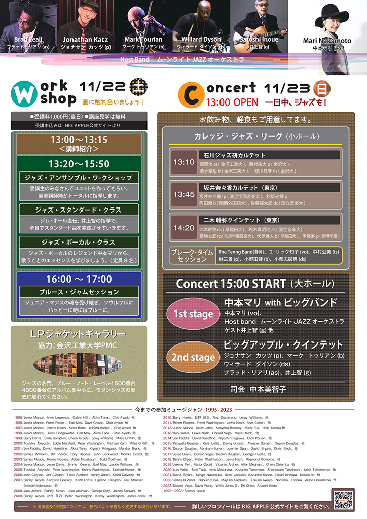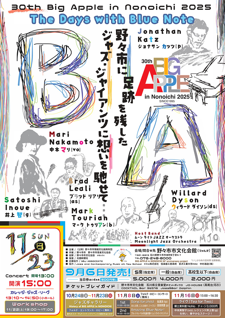 [11/22-23]JAZZイベント『BIG APPLE in NONOICHI 2025』が野々市文化会館フォルテで開催(野々市市)