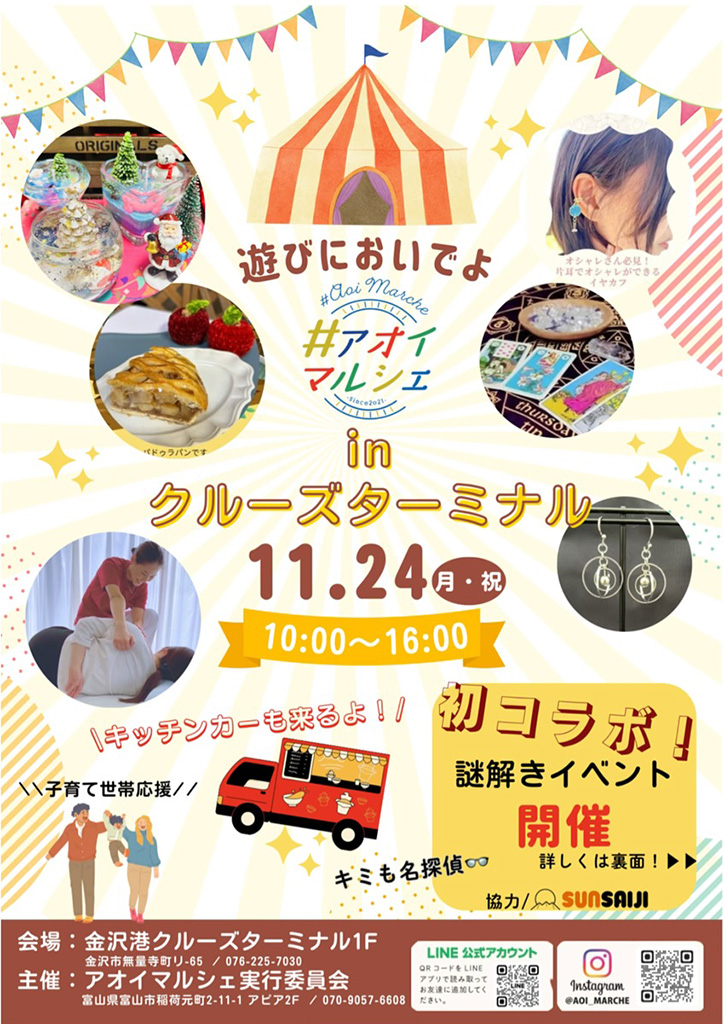 11月24日(月祝)に石川県金沢市の「金沢港クルーズターミナル」にて『アオイマルシェinクルーズターミナル』が開催されます