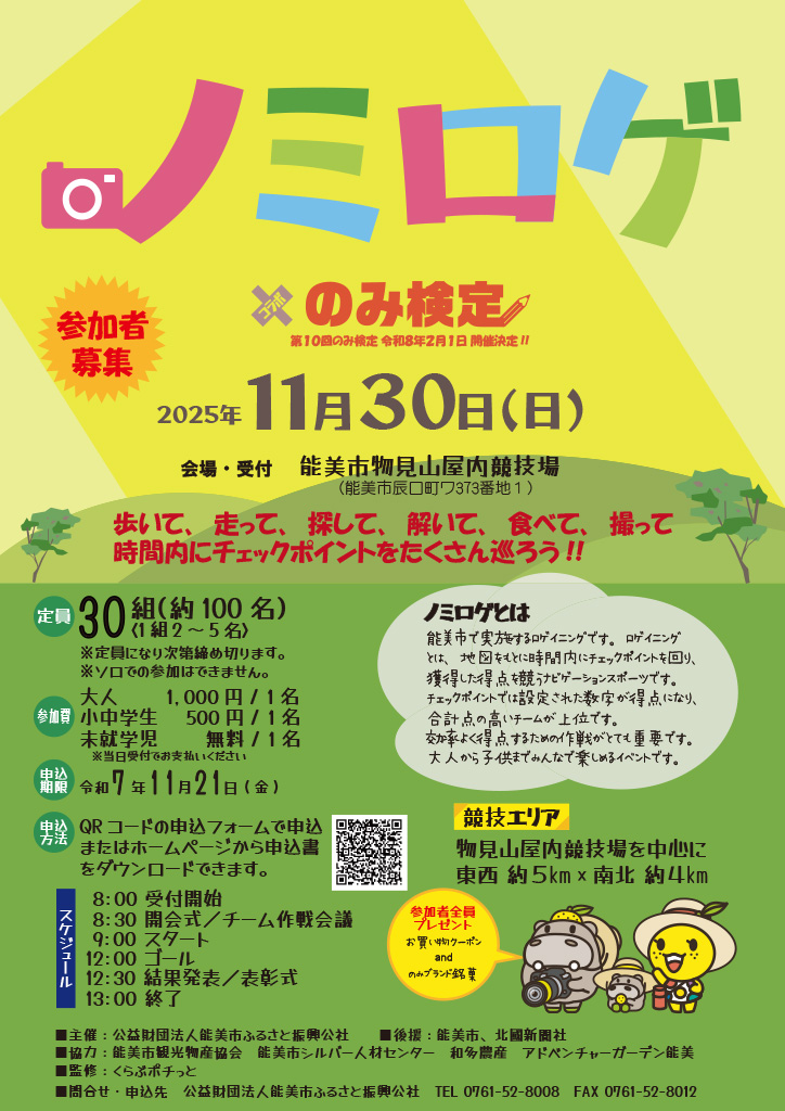 主催・お問合せ能美市ふるさと振興公社(TEL.0761-52-8008)