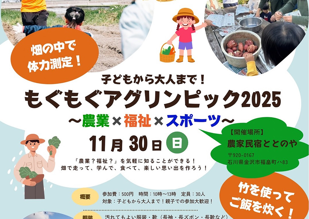 11月30日(日)に石川県金沢市福畠町の「農家民宿ととのや」にて『もぐもぐアグリンピック2025』が開催されます