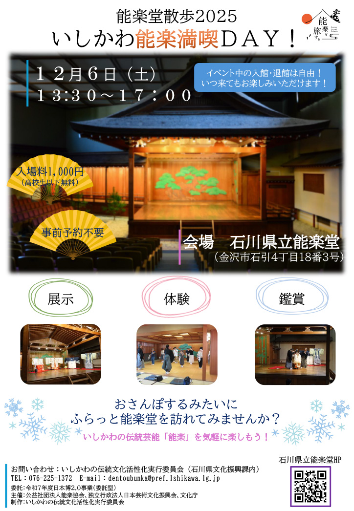 能楽にふれる、楽しむ、感じる特別イベント「能楽堂散歩2025 いしかわ能楽満喫DAY!」