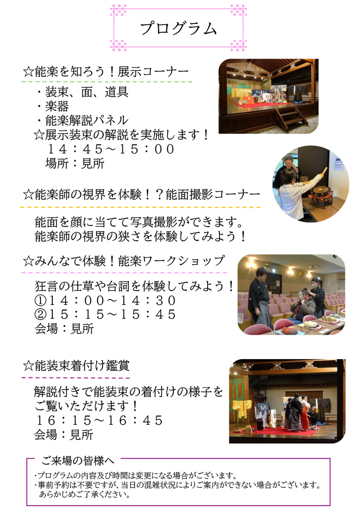 など展示や体験を通して気軽に能楽を楽しめるイベントです
