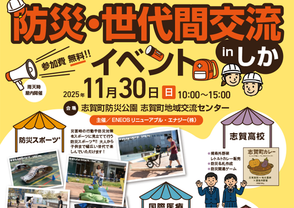 『防災・世代間交流イベント』が石川県羽咋郡志賀町の「志賀町防災公園」で2025年11月30日(日)に開催されます