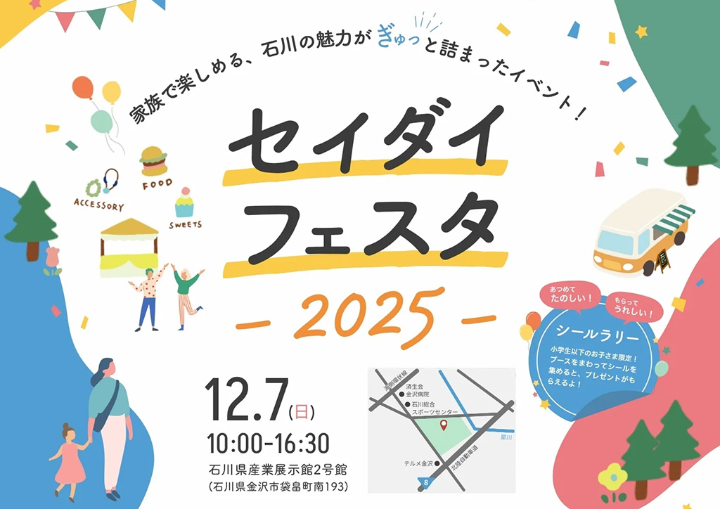 家族で楽しめる、石川の魅力がぎゅっと詰まったイベント!『セイダイフェスタ 2025』が石川県金沢市の「石川県産業展示館」で2025年12月7日(日)に開催されます