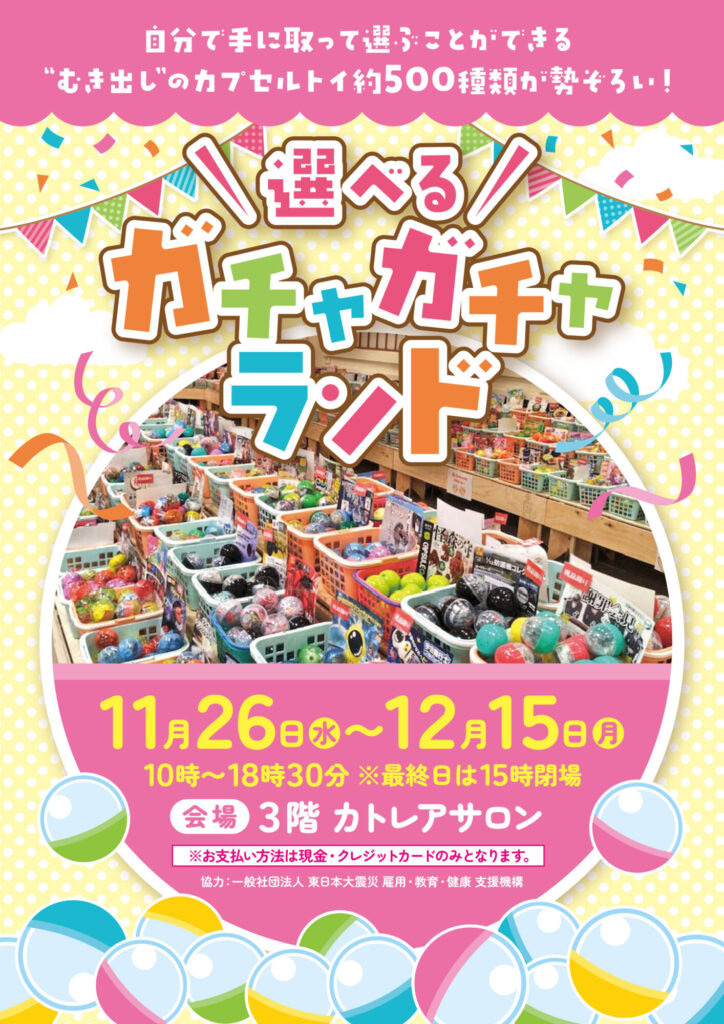 11月26日(水)から12月15日(月)までの期間、石川県金沢市の「金沢エムザ」にて『選べるガチャガチャランド』が開催されます
