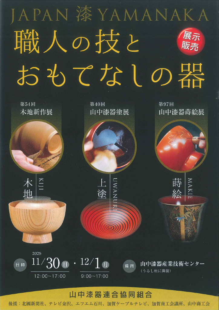 『職人の技とおもてなしの器〜山中漆器の合同展示販売会』が石川県金沢市の「山中漆器産業技術センター」で2025年11月30日(日)、12月1日(月)に開催されます