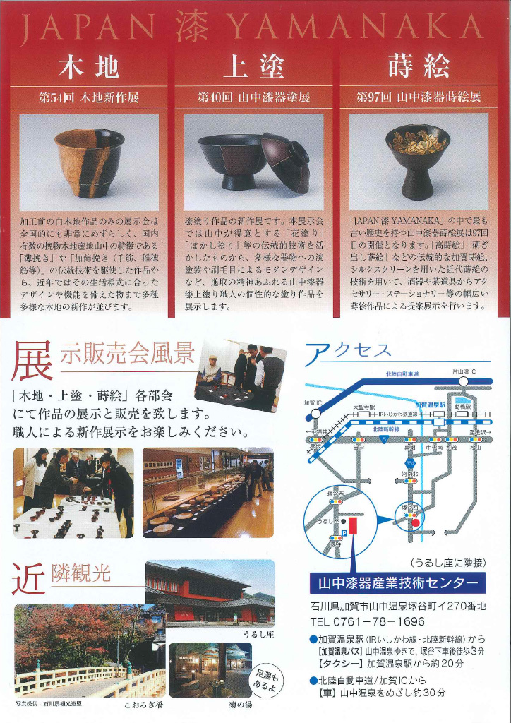 | 開催場所 | 山中漆器産業技術センター (〒922-0111 石川県加賀市山中温泉塚谷町イ270) |