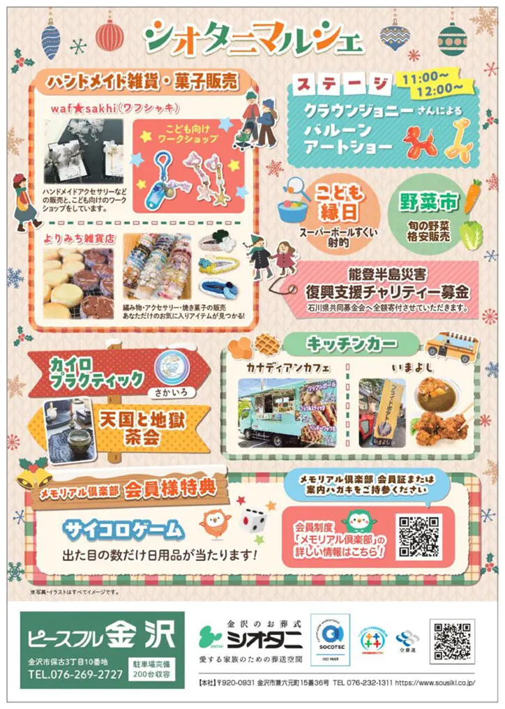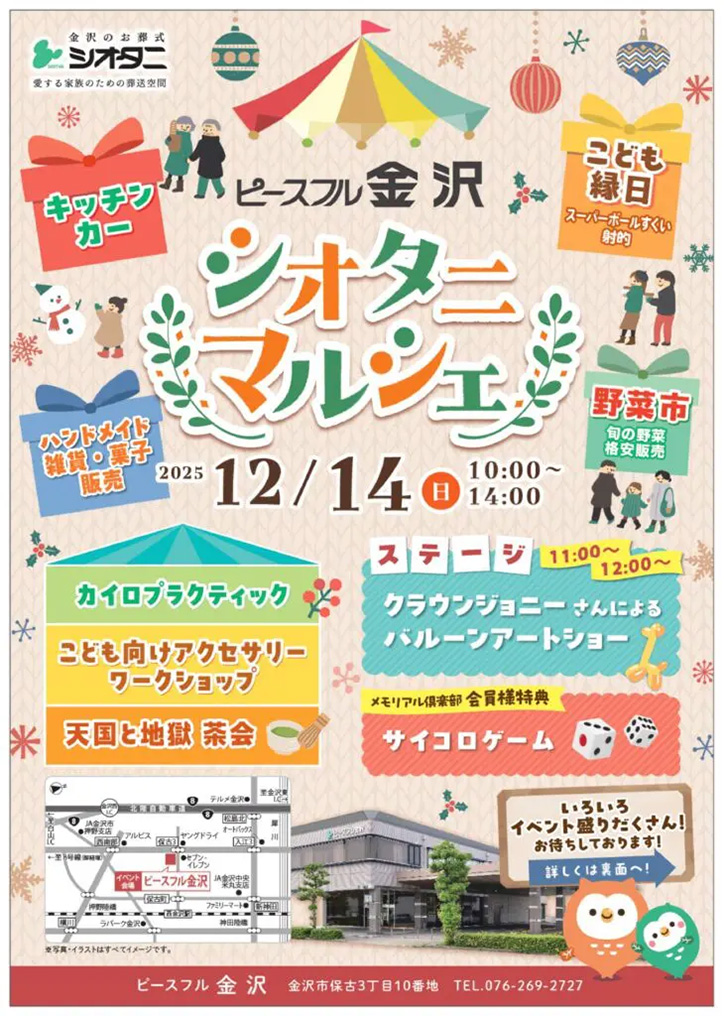『シオタニマルシェinピースフル金沢』が石川県金沢市の「ピースフル金沢」で2025年12月14日(日)に開催されます