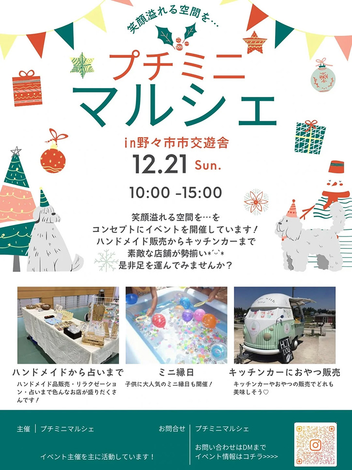 12月21日(日)に石川県野々市市の「野々市市交遊舎」にて『プチミニマルシェin野々市市交遊舎』が開催されます