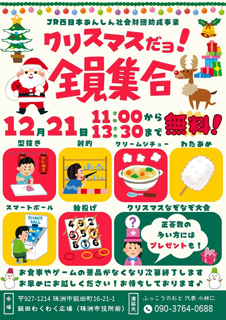 12月21日(日)に石川県珠洲市の「飯田わくわく広場」にて『クリスマスだよ!全員集合』が開催されます