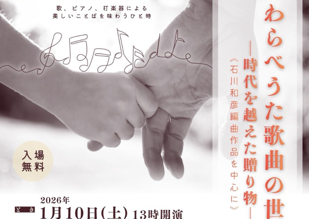 『わらべううた歌曲の世界/–時代を超えた贈り物–vol.3』が石川県七尾市の「能登食祭市場(七尾フィッシャーマンズワーフ)」で2026年1月10日(土)に開催されます