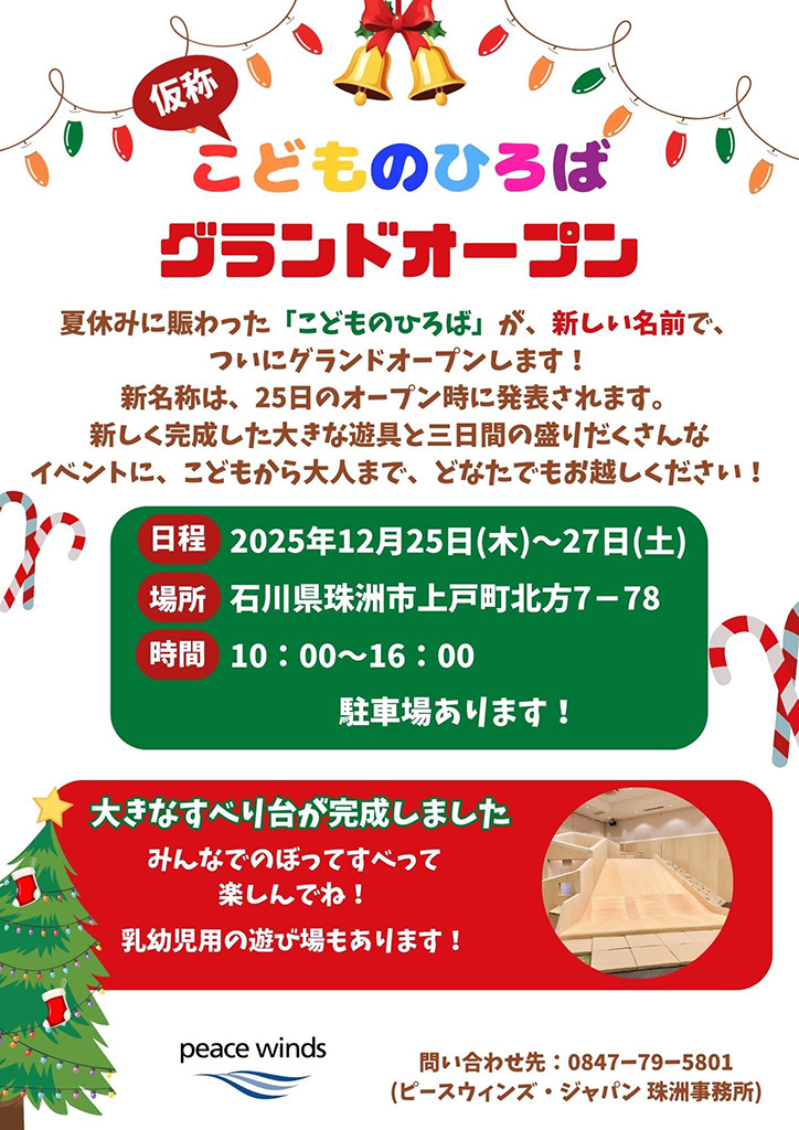 [12/25-27]こどものひろば(仮称)グランドオープン‼︎オープニングイベント開催(能登珠洲)