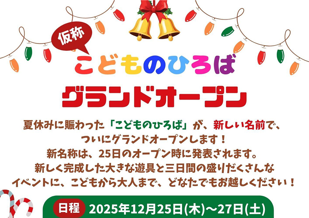 夏休みに賑わった「こどものひろば」が、みなさんからの応募で決定した新名称になり、グランドオープンの25日に発表されます!!