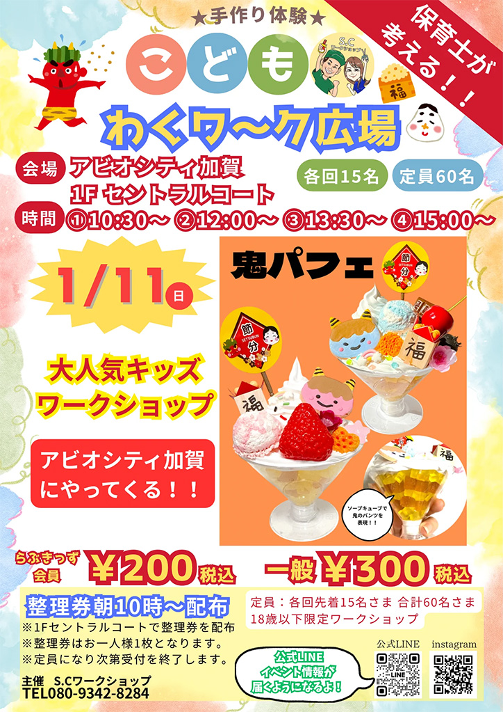 1月11日(日)に石川県加賀市の「アビオシティ加賀」にて『こどもわくワ〜ク広場「鬼パフェを作ろう」』が開催されます