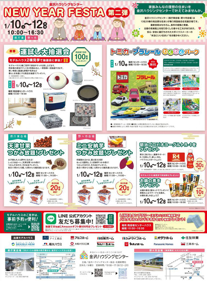 金沢ハウジングセンター NEW YAER FESTA 第二弾@県庁東会場・野々市会場 イベント内容