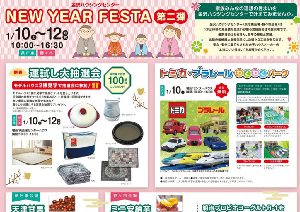 金沢ハウジングセンター NEW YAER FESTA 第二弾@県庁東会場・野々市会場 イベント内容