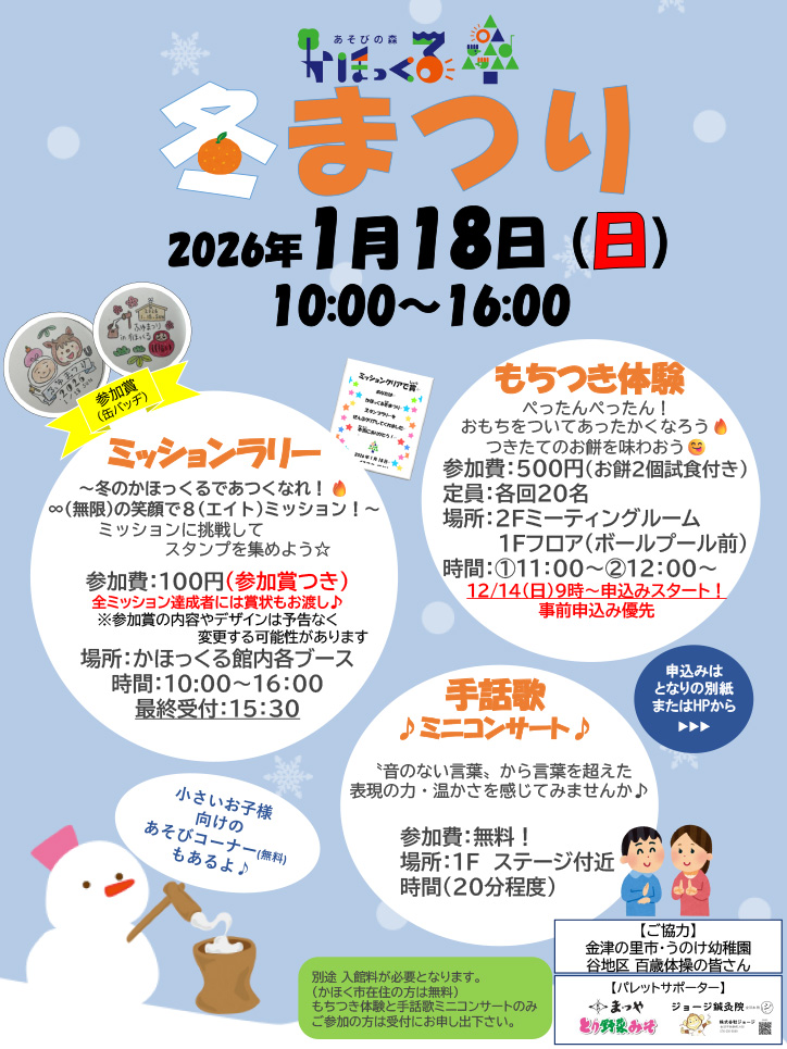 『かほっくる 冬まつり』が石川県かほく市の「あそびの森 かほっくる」で2026年1月18日(日)に開催されます