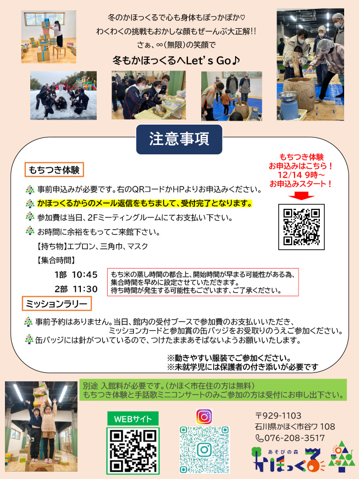 | お問合せ | あそびの森 かほっくる(TEL.076-208-3517) |