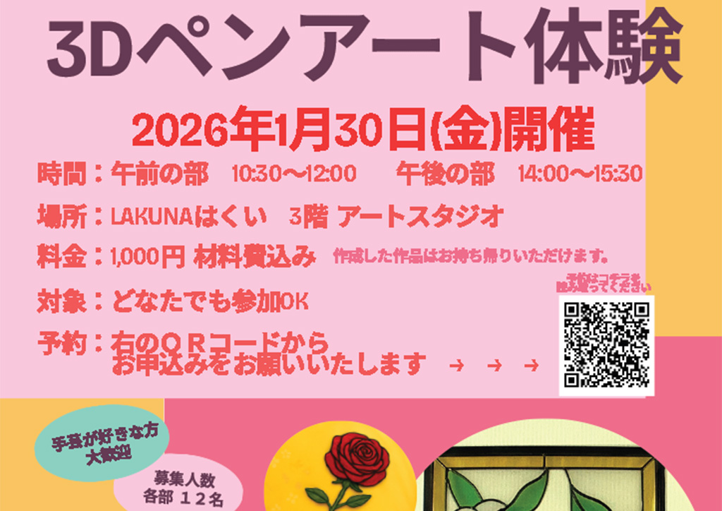 『3Dペンアート体験』が石川県羽咋市の「LAKUNAはくい」で2026年1月30日(金)に開催されます
