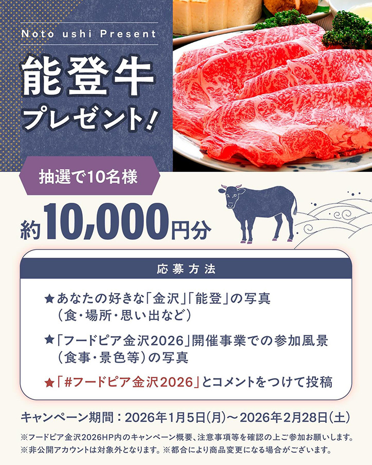 『第41回フードピア金沢2026』の開催に伴い、2026年1月5日(月)から2月28日(土)までの期間、『フードピア金沢2026 投稿キャンペーン』が開催されます