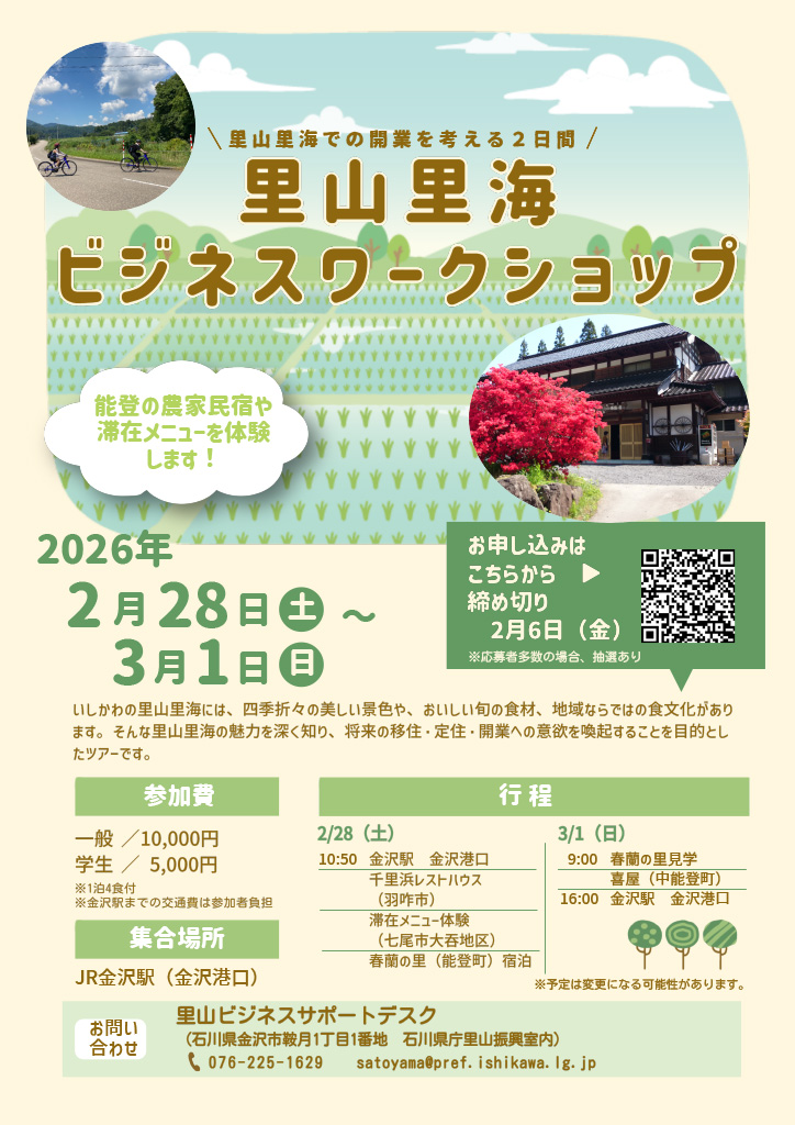 | 公式サイト | https://www.pref.ishikawa.lg.jp/satoyama/slowtourism/businessworkshop2025.html |