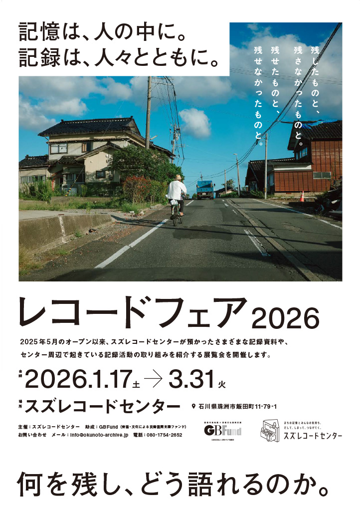 2025年5月のオープン以来、スズレコードセンターが預かったさまざまな記録資料や、センター周辺で起きている記録活動の取り組みを紹介する展覧会です