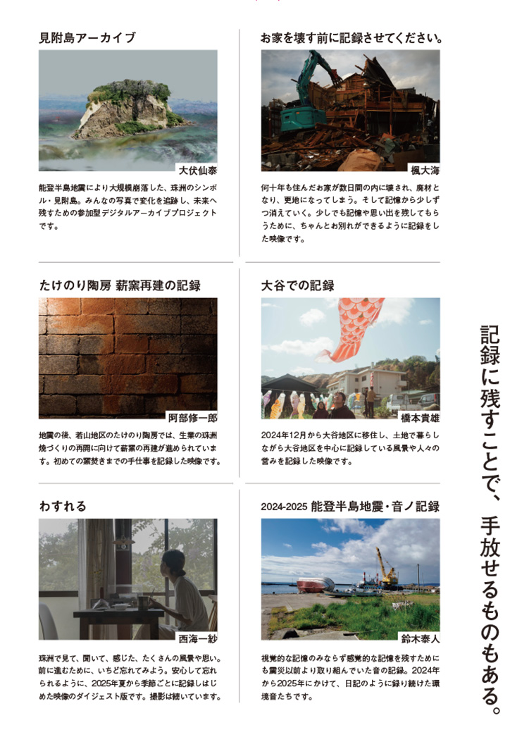 奥能登アーカイブは、地震や水害のあとに向き合い記録された写真や映像を資料としてデジタルデータで残し、人々の交流を進める参加型のプロジェクトです