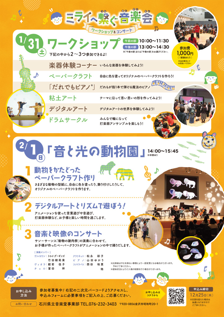 ~東京藝術大学連携事業~ミライへ繋ぐ音楽会 ワークショップ&コンサート@石川県立音楽堂 開催概要
