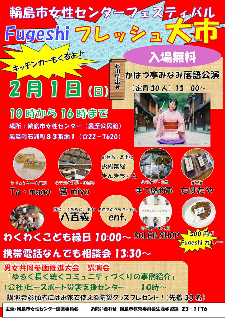輪島市女性センターフェスティバル『フレッシュ大市』@輪島市女性センター 開催概要