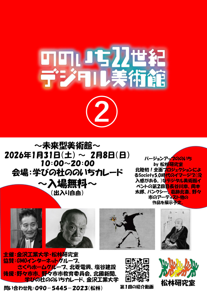 [1/31-2/8]第2回ののいち22世紀デジタル美術館が学びの杜ののいちカレードで開催(野々市)