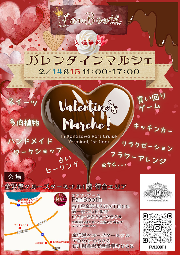 2月14日(土)、2月15日(日)に石川県金沢市の「金沢港クルーズターミナル」にて『FanBooth☆バレンタインマルシェ』が開催されます