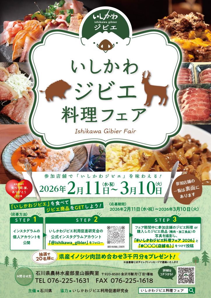 | 公式サイト | https://www.pref.ishikawa.lg.jp/satoyama/jibier/gibierfair2026.html |
