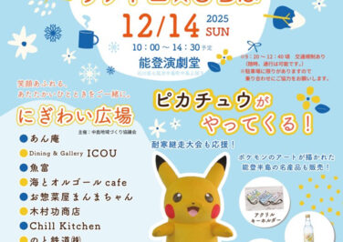 石川イベント能登南部開催 [12/14]テアトロ★ひろば〜ピカチュウがやってくる!〜が能登演劇堂で開催(能登七尾) 『テアトロ★ひろば〜ピカチュウがやってくる!〜』が石川県七尾市の「能登演劇堂」で2025年12月14日(日)に開催されま... 2025.12.10 石川イベント能登南部開催