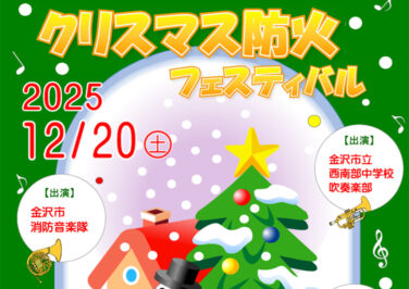 石川イベント金沢開催 [12/20]クリスマス防火フェスティバルが金沢港クルーズターミナルで開催(金沢) 『クリスマス防火フェスティバル』が石川県金沢市の「金沢港クルーズターミナル」で2025年12月20日(土)に開催されます... 2025.12.10 石川イベント金沢開催