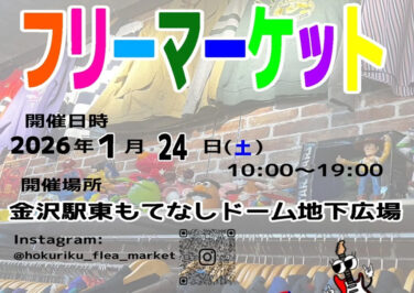 石川イベント金沢開催 [12/28]北陸フリーマーケットが金沢駅東もてなしドーム地下広場で開催(金沢) 『北陸フリーマーケット』が石川県金沢市の「金沢駅東もてなしドーム地下広場」で2025年12月28日(日)に開催されます北... 2025.12.22 石川イベント金沢開催