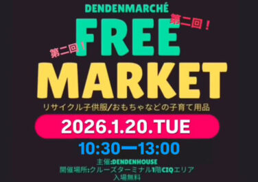 石川イベント金沢開催 [1/20]第二回 dendenmarché〜子育て用品フリーマーケット〜が金沢港クルーズターミナルで開催 『第二回 dendenmarché〜子育て用品フリーマーケット〜』が石川県金沢市の「金沢港クルーズターミナル」で2026... 2026.01.12 石川イベント金沢開催