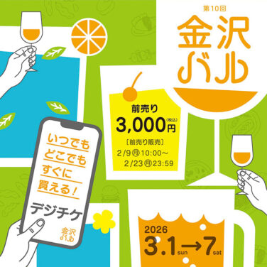 石川イベント金沢開催 [3/1-7]お得に食べ歩き、はしご酒が楽しめる『第10回金沢バル』が金沢中心商店街&周辺5商店街で開催(金沢) お得に食べ歩き、はしご酒が楽しめる『第10回金沢バル』が石川県金沢市の「金沢中心商店街&周辺5商店街」で2026年3月1... 2026.02.19 石川イベント金沢開催