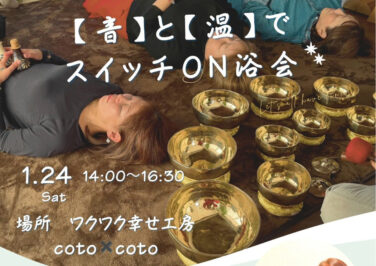 白山・能美石川イベント開催 [1/24]【音】と【温】でスイッチON浴会がワクワク幸せ工房 COTO×COTOで開催(白山市) 『【音】と【温】でスイッチON浴会』が石川県白山市の「ワクワク幸せ工房 COTO×COTO」で2026年1月24日(土)... 2026.01.08 白山・能美石川イベント開催