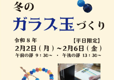 石川イベント金沢開催 [2/2-6]冬のガラス玉づくりが石川県埋蔵文化財センターで開催(金沢) 『冬のガラス玉づくり』が石川県金沢市の「石川県埋蔵文化財センター」で2026年2月2日(月)から2月6日(金)まで開催さ... 2026.01.18 石川イベント金沢開催