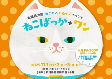 石川イベント金沢開催 [11/1-3]ねこばっか+ワン vol.10が石川県産業展示館で開催(金沢) 『ねこばっか+ワン vol.10』が石川県金沢市の「石川県産業展示館」で2025年11月1日(土)から11月3日(月祝)... 2025.10.22 石川イベント金沢開催