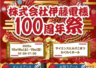 小松石川イベント開催 [10/18-19]伊藤電機100周年まつりがサイエンスヒルズこまつで開催(小松) 『伊藤電機100周年まつり』が石川県小松市の「サイエンスヒルズこまつ」で2025年10月18日(土)、10月19日(日)... 2025.10.07 小松石川イベント開催