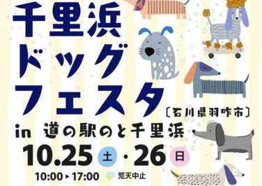 石川イベント能登南部開催 [10/25-26]千里浜ドッグフェスタが道の駅 のと千里浜で開催(能登羽咋) 『千里浜ドッグフェスタ』が石川県羽咋市の「道の駅 のと千里浜」で2025年10月25日(土)、10月26日(日)に開催さ... 2025.10.22 石川イベント能登南部開催
